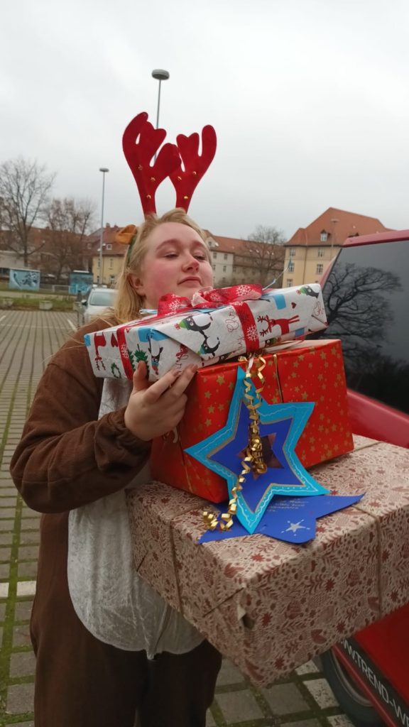 Am 22.12.2026 besuchten unsere zwei Kinderhauswichtel und das Rentier 65 Kinder aus unserem Kinderhaus und überbrachten ihn mit viel Freude und Herzlichkeit ein Weihnachtsgeschenk. Wir danken dem Warenhaus „Globus“ in Isserstedt und dem Nahkauf „Heyer“ in der Weimarer Bodelschwinghstraße für ihre Wunschbäume, welche diese Weihnachtsaktion ermöglichten.